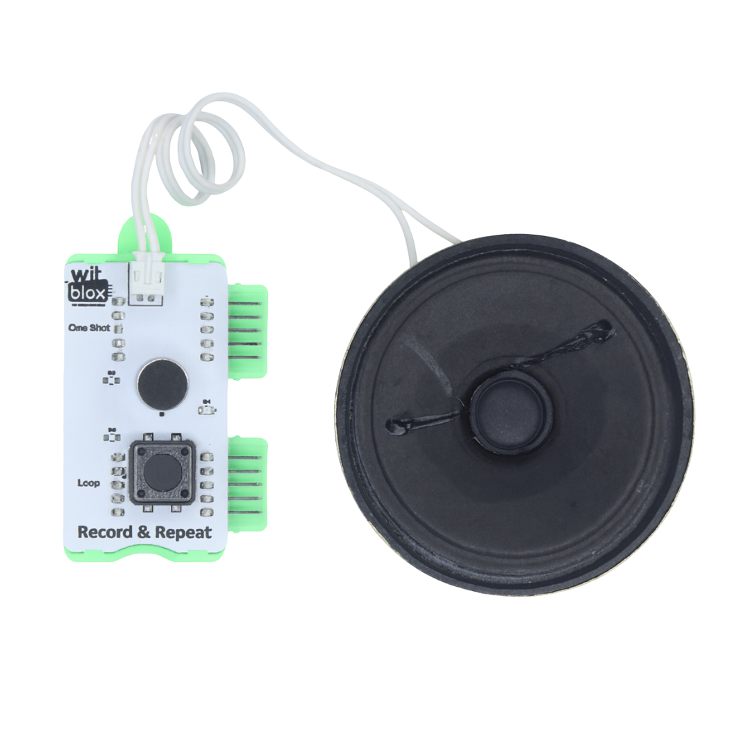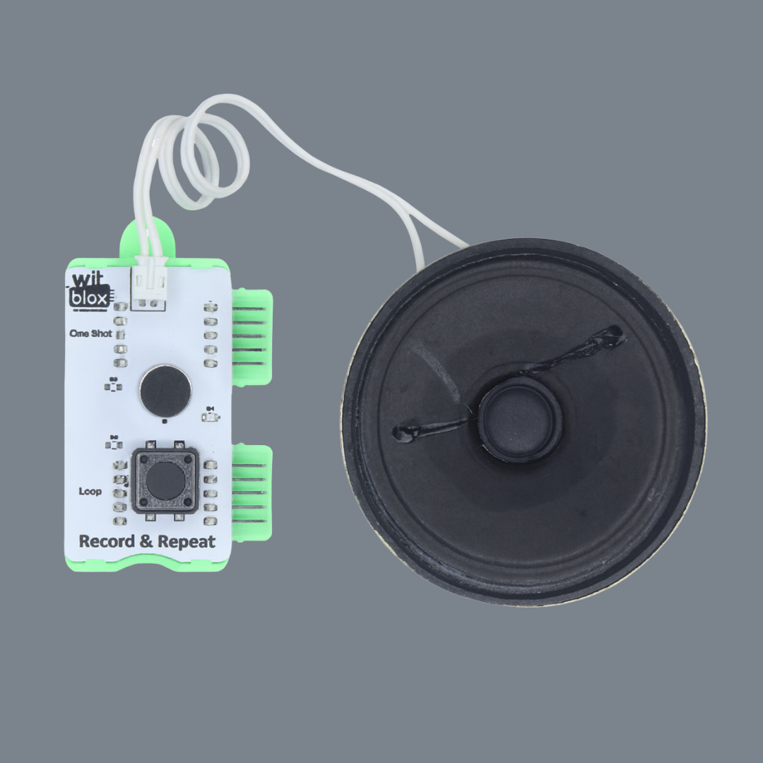 The Record & Repeat Blox, comes with an integrated speaker to play the recorded sound.
